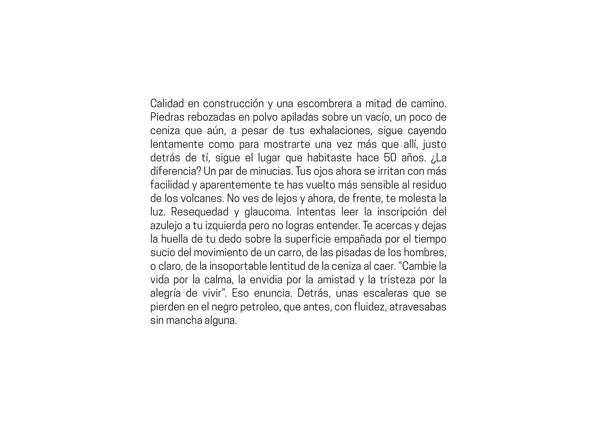 Corresponde a un ejercicio para la memoria y el desconcierto. Todos los lugares ahora son vestigios de lo que fueron en su momento, transformándose, rediseñándose o descomponiéndose en otros. Capas de historias que ya no corresponden en forma y que ahora mismo se alojan solo en el pensamiento.